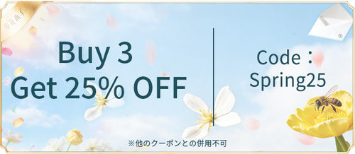 2点ご購入で20%OFF、3点ご購入で25%OFF。